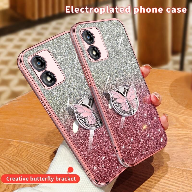 Για Motorola Moto E13 Επιμεταλλωμένο διαβάθμιση Glitter πεταλούδα κάτοχος TPU τηλέφωνο υπόθεση (Μωβ)