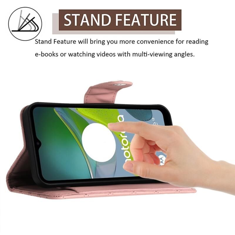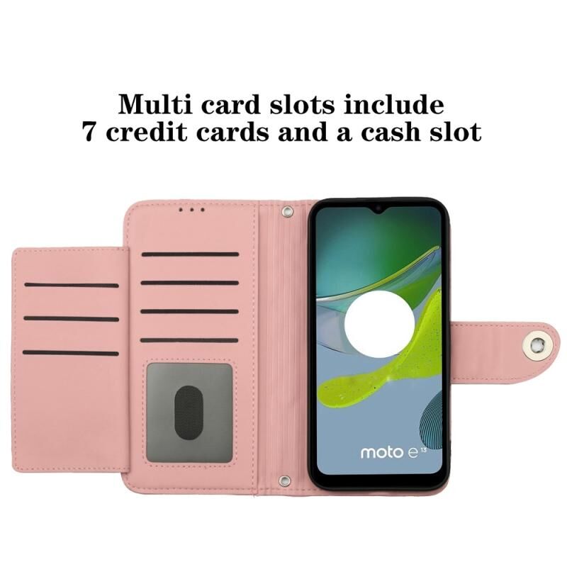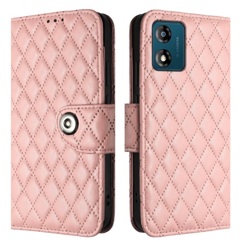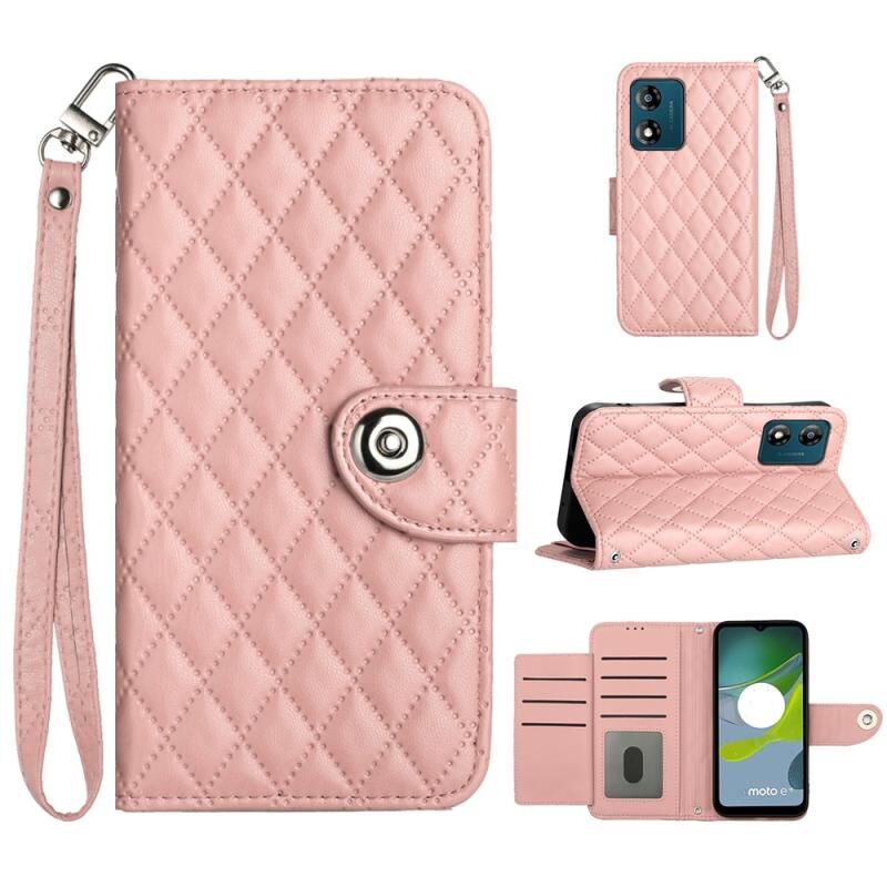 Για Motorola Moto E13 Rhombic Texture Flip δερμάτινη θήκη τηλεφώνου με κορδόνι (Coral Pink)