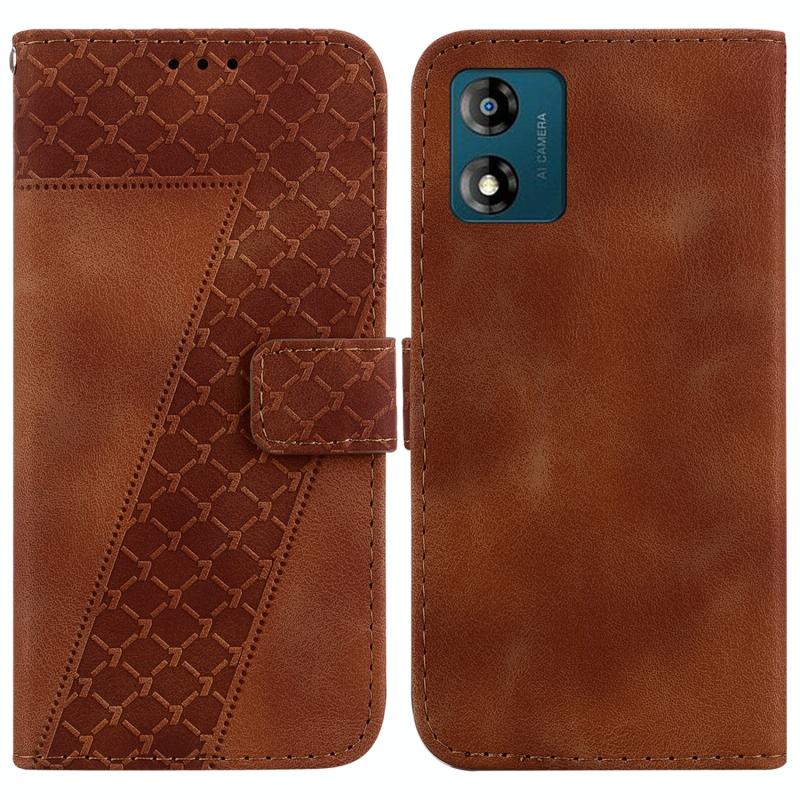 For Motorola Moto E13 Seven-shaped Embossed Leather Phone Case(Brown)