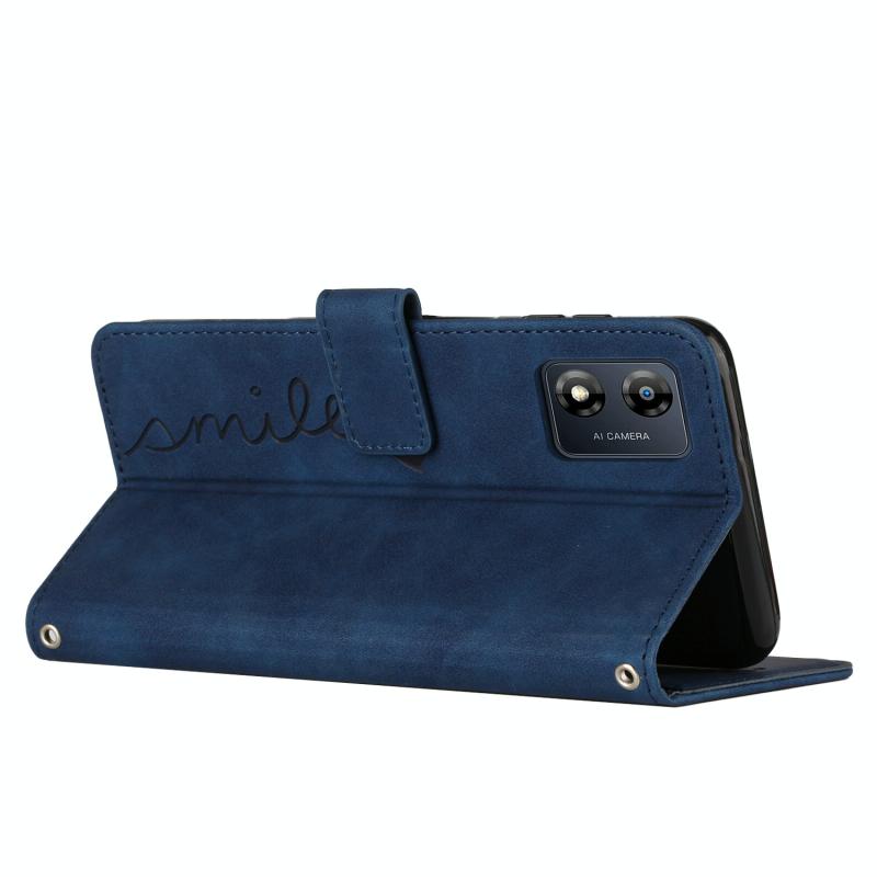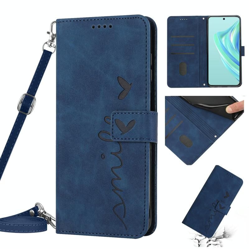 Θήκη κινητού τηλεφώνου από δέρμα με σχέδιο καρδιάς και αίσθηση δέρματος για Motorola Moto E13 με κορδόνι (Μπλε)