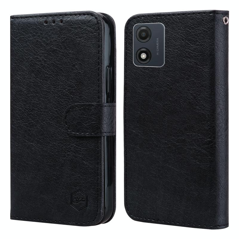 Θήκη κινητού τηλεφώνου για Motorola Moto E13, με υφή δέρματος λαδιού και υλικό PU + TPU (Μαύρο)