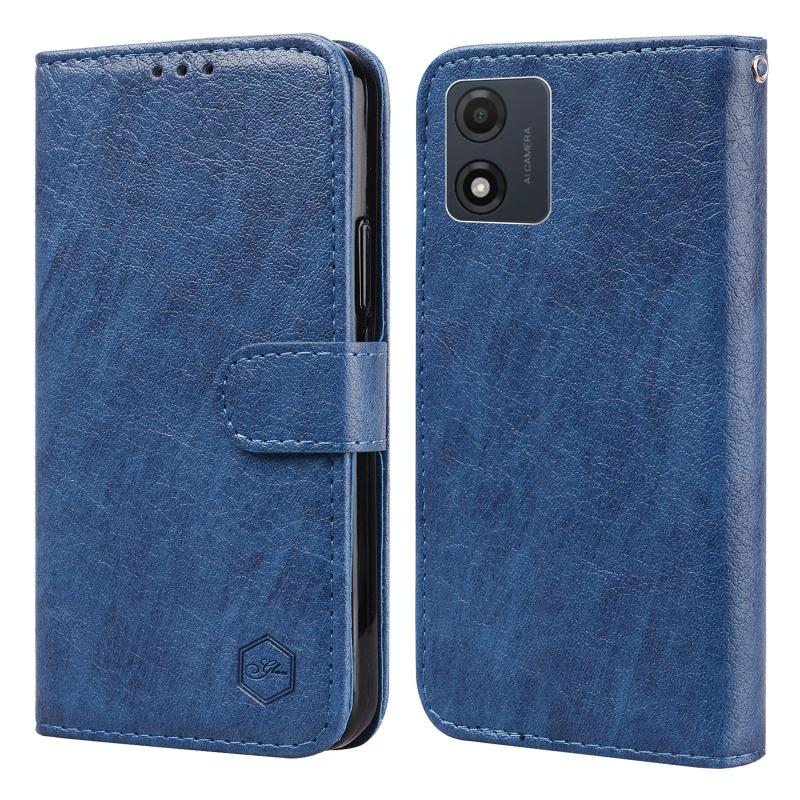 Θήκη κινητού τηλεφώνου για Motorola Moto E13, με υφή δέρματος λαδιού και υλικό PU + TPU (Σκούρο μπλε)