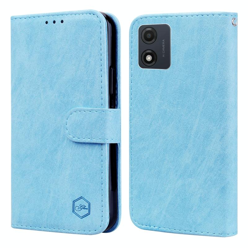 Θήκη κινητού τηλεφώνου για Motorola Moto E13, με υφή δέρματος λάδι και PU + TPU (Ανοιχτό μπλε)