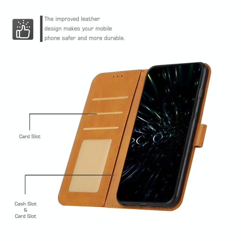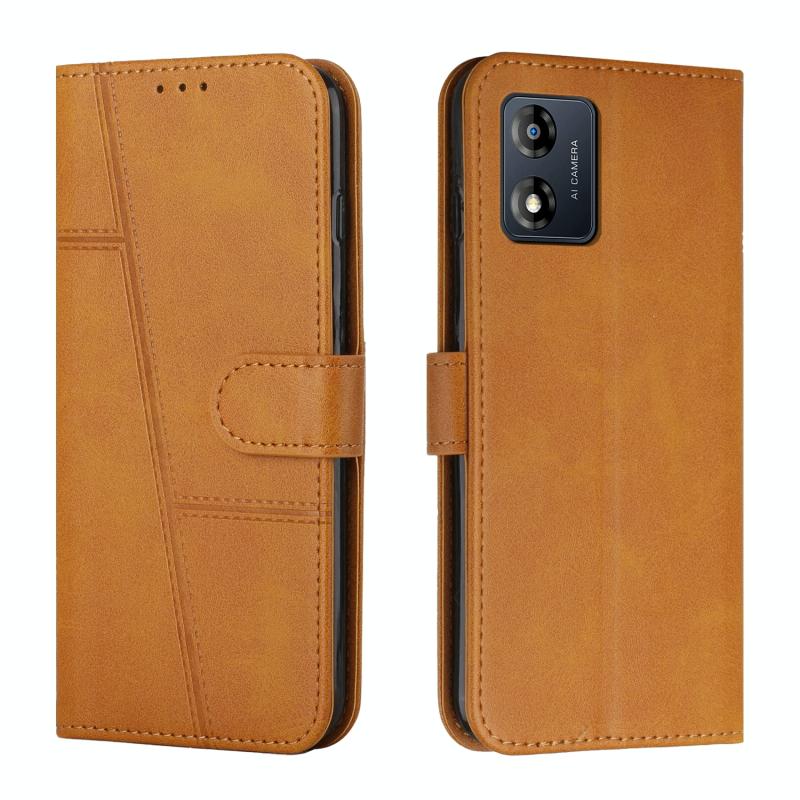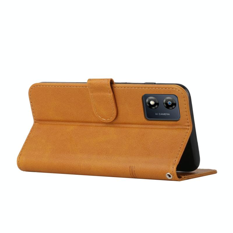 Θήκη τηλεφώνου δερμάτινη με υφή μοσχαριού και αγκράφα για Motorola Moto E13 (Κίτρινο)
