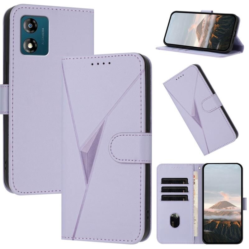 Για Motorola Moto E13 Τρίγωνο μοτίβο αγκράφα κούμπωμα δερμάτινη θήκη τηλεφώνου (Light Purple)