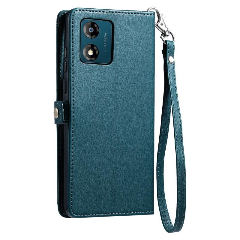 Για Motorola Moto E13 Πορτοφόλι Multi-card Slot Δερμάτινη θήκη τηλεφώνου με κορδόνι (πράσινο)