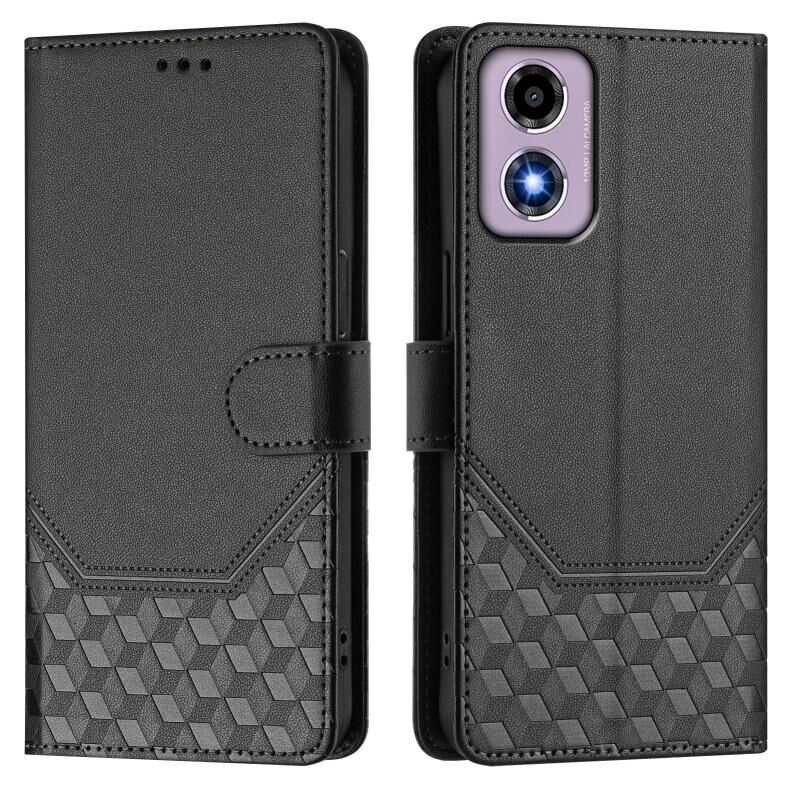 Για Motorola Moto E14 4G / G24 4G Honeycomb ανάγλυφη RFID δερμάτινη θήκη τηλεφώνου (Μαύρο)