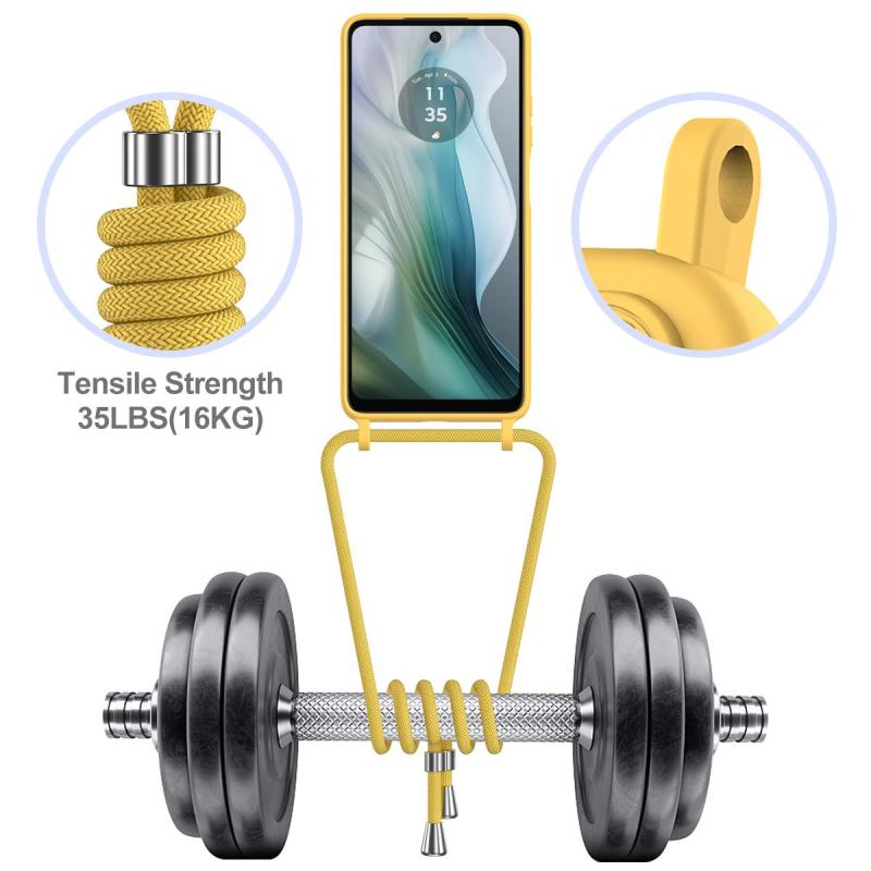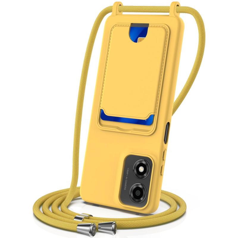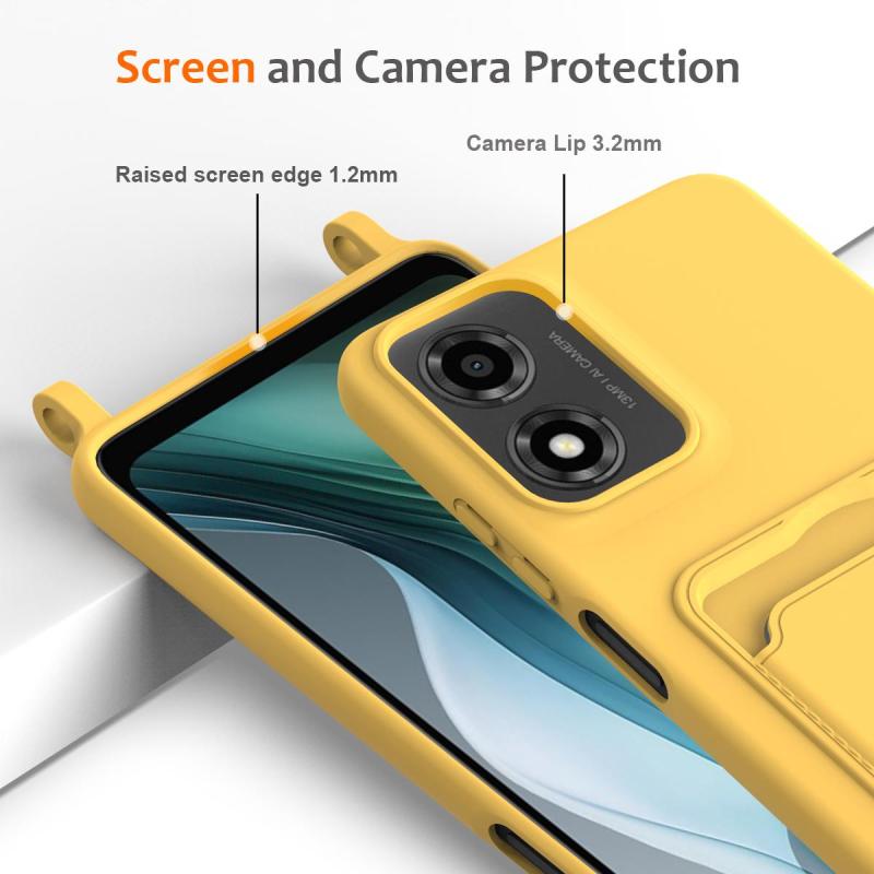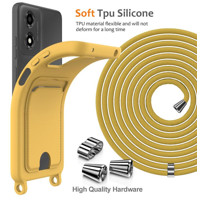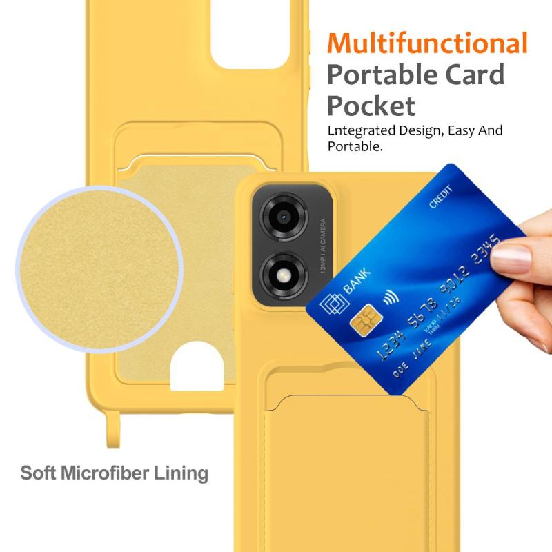 For Motorola Moto E14 4G Integrated Card Bag Solid Color Liquid Silicone Phone Case with Lanyard(Yellow)