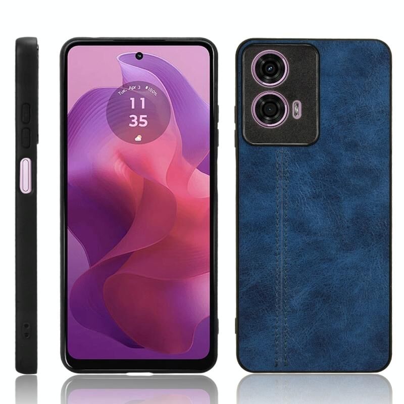 Για Motorola Moto E14 Αγελάδα μοτίβο ραπτικής πίσω κάλυμμα τηλέφωνο υπόθεση (μπλε)