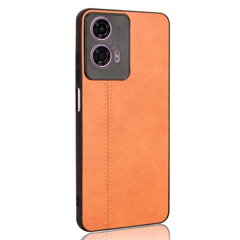 Για Motorola Moto E14 Αγελάδα μοτίβο ραπτικής πίσω κάλυμμα τηλέφωνο υπόθεση (πορτοκαλί)