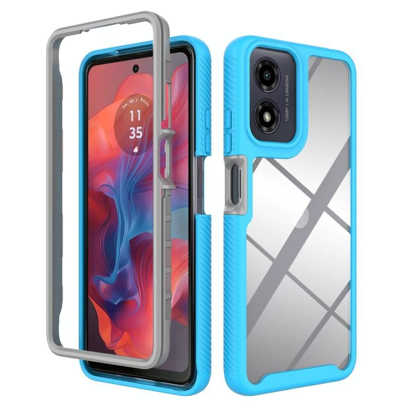 Για Motorola Moto E14 / G24 / G04 Starry Sky στερεό χρώμα Shockproof TPU σαφές PC τηλέφωνο υπόθεση (Sky Blue)