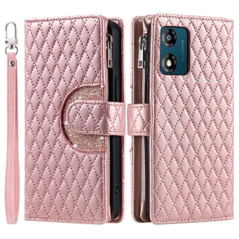 Για Motorola Moto E14 Glitter Lattice φερμουάρ πορτοφόλι δερμάτινη θήκη τηλεφώνου (Ροζ χρυσός)