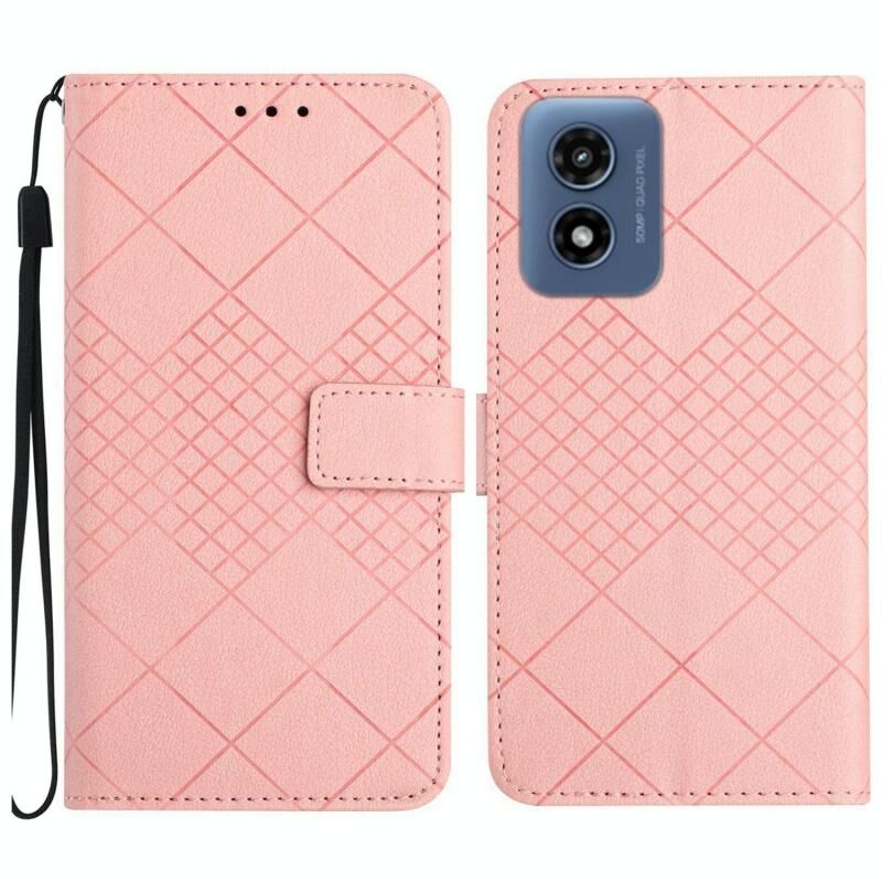 Για Motorola Moto E14 Rhombic Grid υφή δερμάτινη θήκη τηλεφώνου (ροζ)