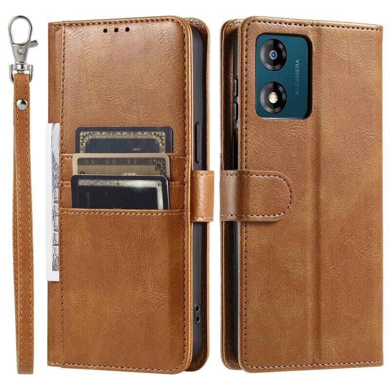 Για Motorola Moto E14 Απλή 6-Card πορτοφόλι δερμάτινη θήκη τηλεφώνου (καφέ)