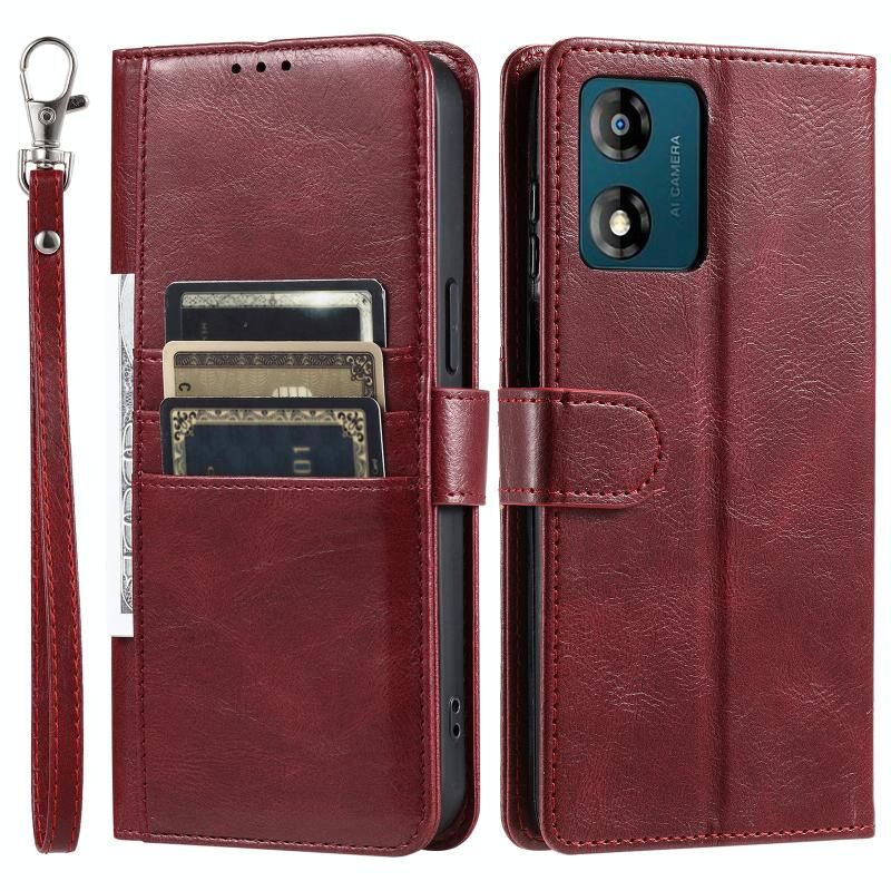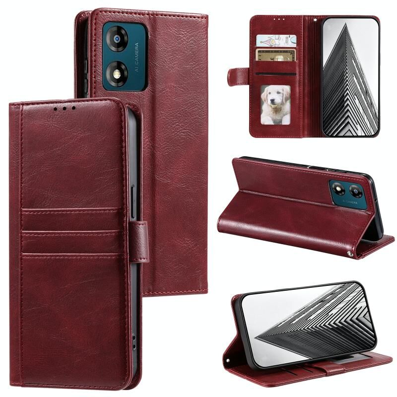 Για Motorola Moto E14 Απλή 6-Card πορτοφόλι δερμάτινη θήκη τηλεφώνου (κόκκινο κρασί)
