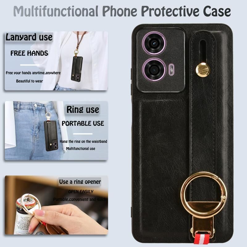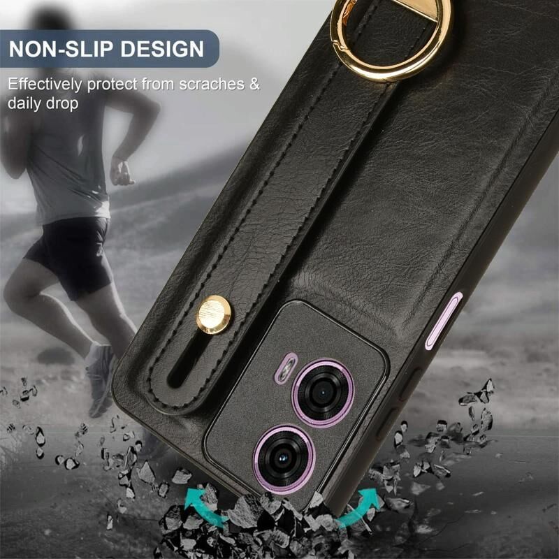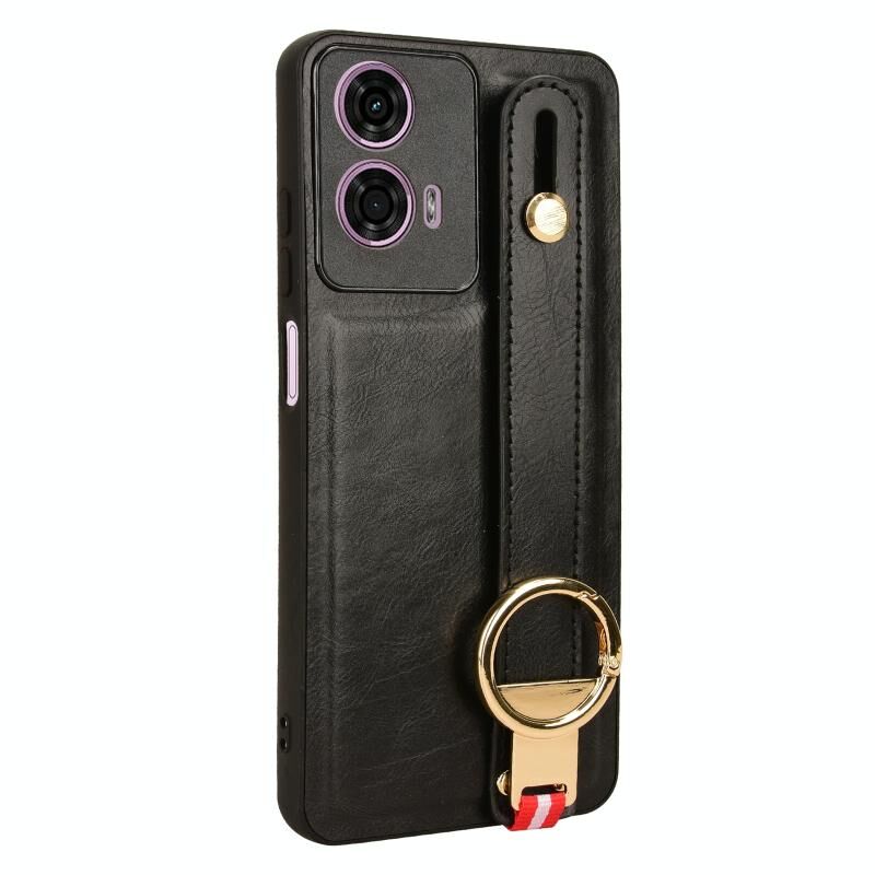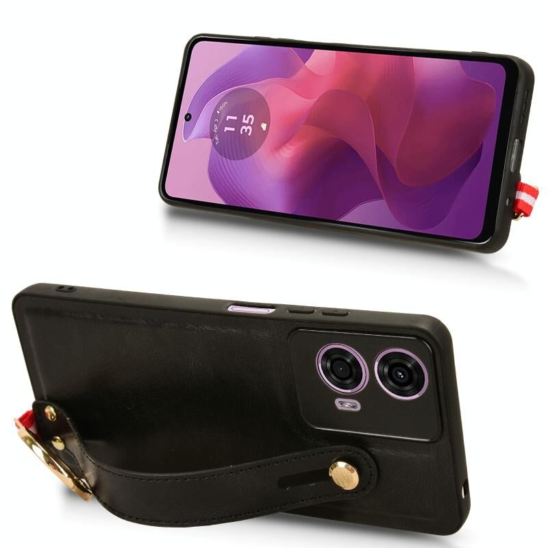 Για Motorola Moto E14 Wristband δέρμα πίσω θήκη τηλεφώνου (Μαύρο)