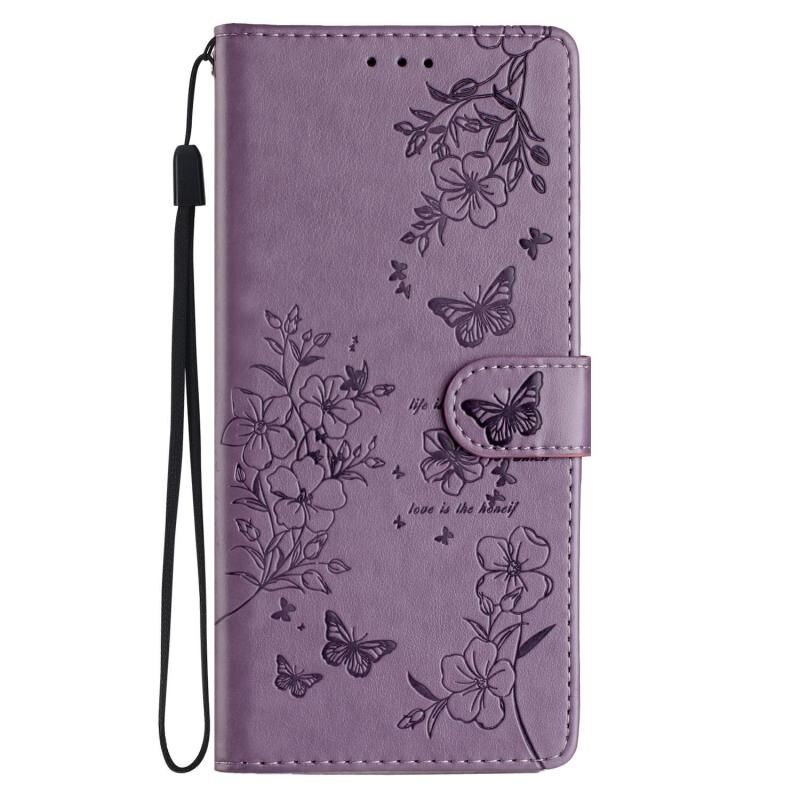 Θήκη τηλεφώνου δερμάτινη για Motorola Moto E15 με σχέδια πεταλούδες και λουλούδια (Μαύρο)