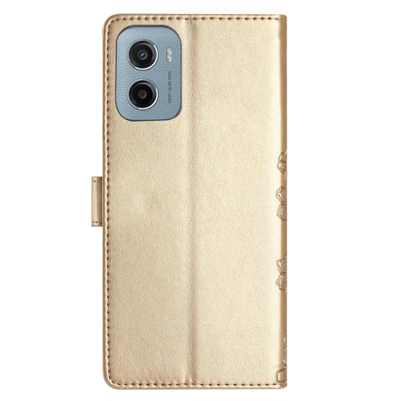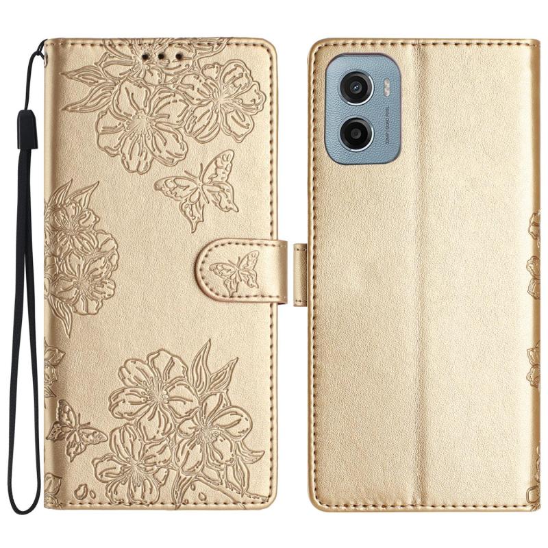 For Motorola Moto E15 Cherry Blossom Butterfly Skin Feel Embossed PU Phone Case(Gold)