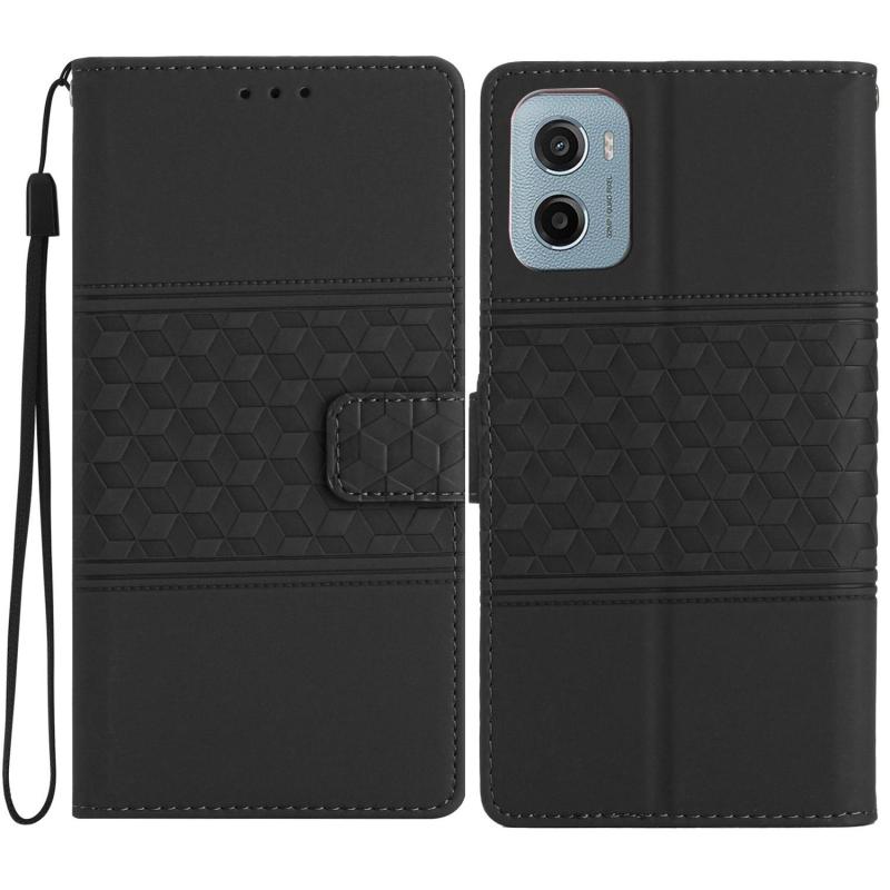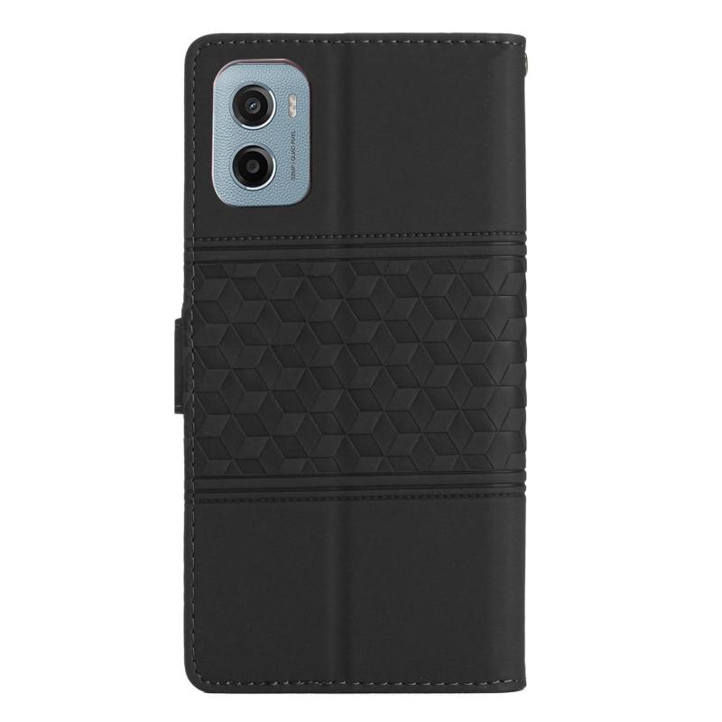 For Motorola Moto E15 Diamond Embossed Skin Feel Leather Phone Case(Black)