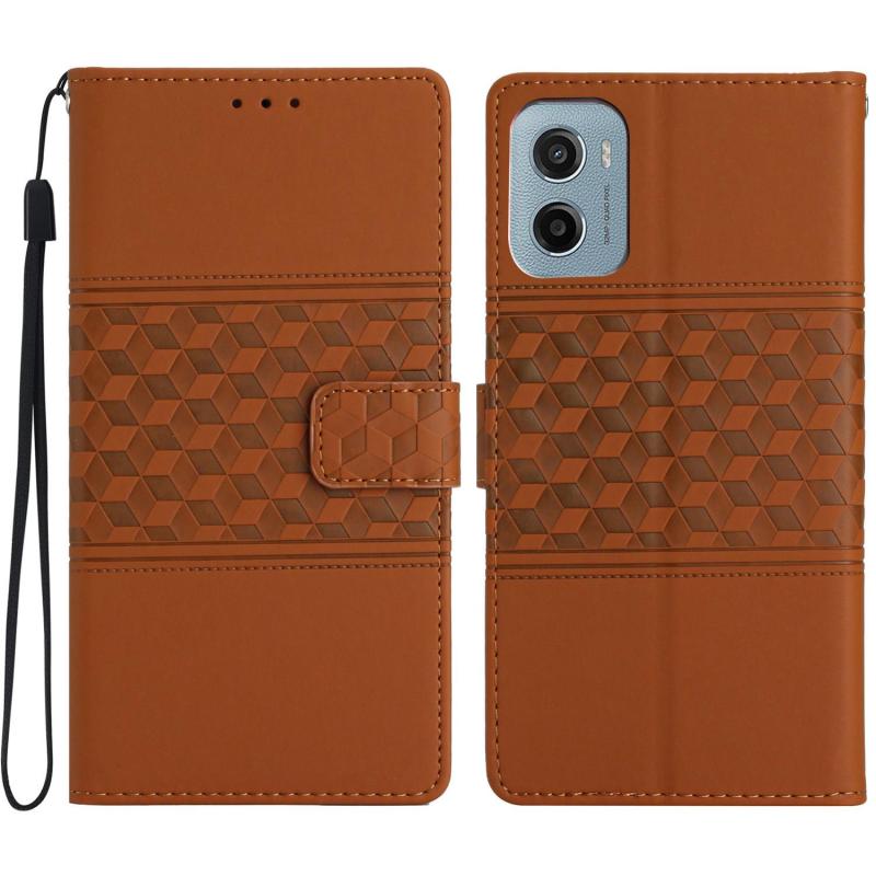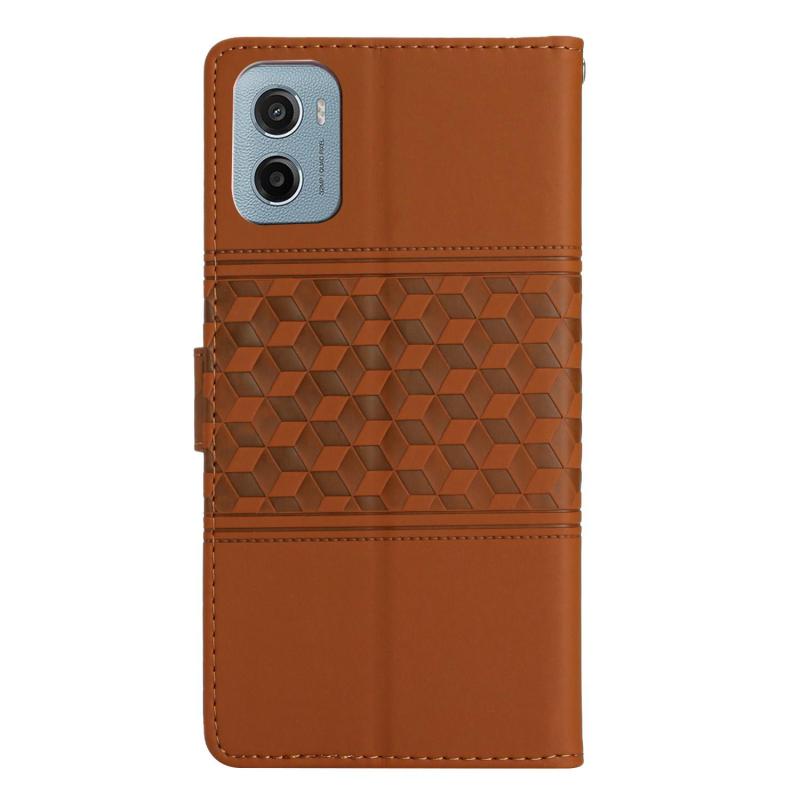 For Motorola Moto E15 Diamond Embossed Skin Feel Leather Phone Case(Brown)