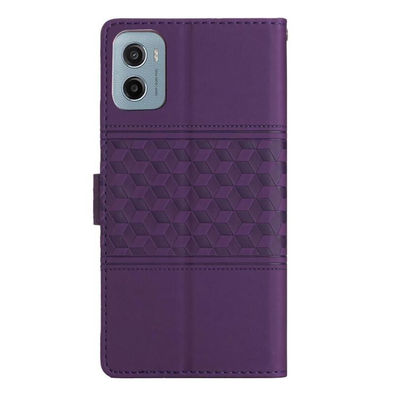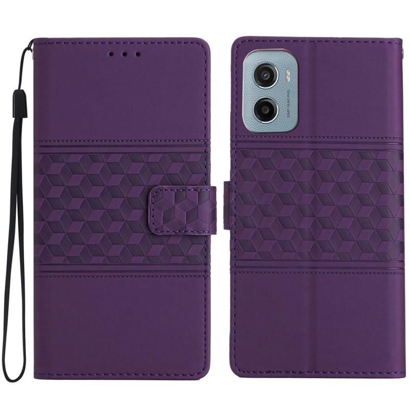 Θήκη κινητού τηλεφώνου δερμάτινη με ανάγλυφο σχέδιο Diamond για Motorola Moto E15 (Μωβ)