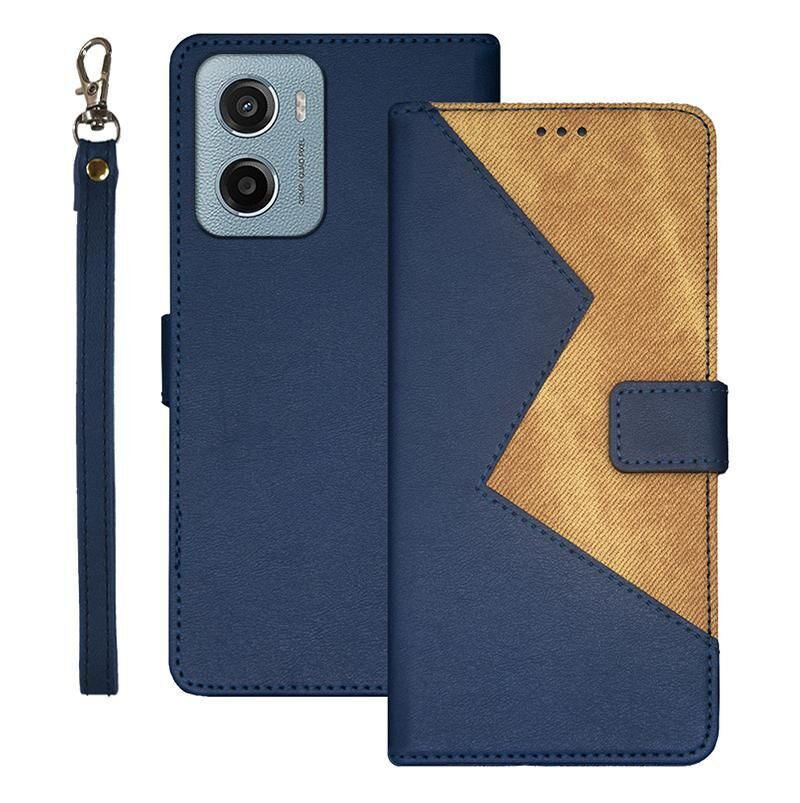 Θήκη κινητού τηλεφώνου δερμάτινη διχρωμίας για Motorola Moto E15 idewei (Μπλε) (idewei)