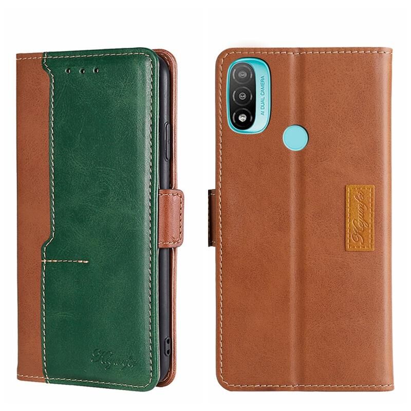 Για Motorola Moto E20 αντίθεση χρώμα πλευρά πόρπη δερμάτινη θήκη τηλεφώνου υπόθεση (ανοιχτό καφέ + πράσινο)