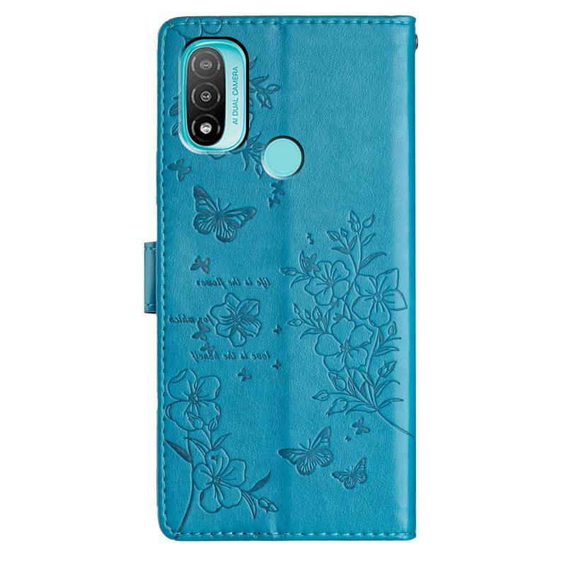 For Motorola Moto E20 / E30 Butterflies and Flowers Leather Phone Case(Blue)