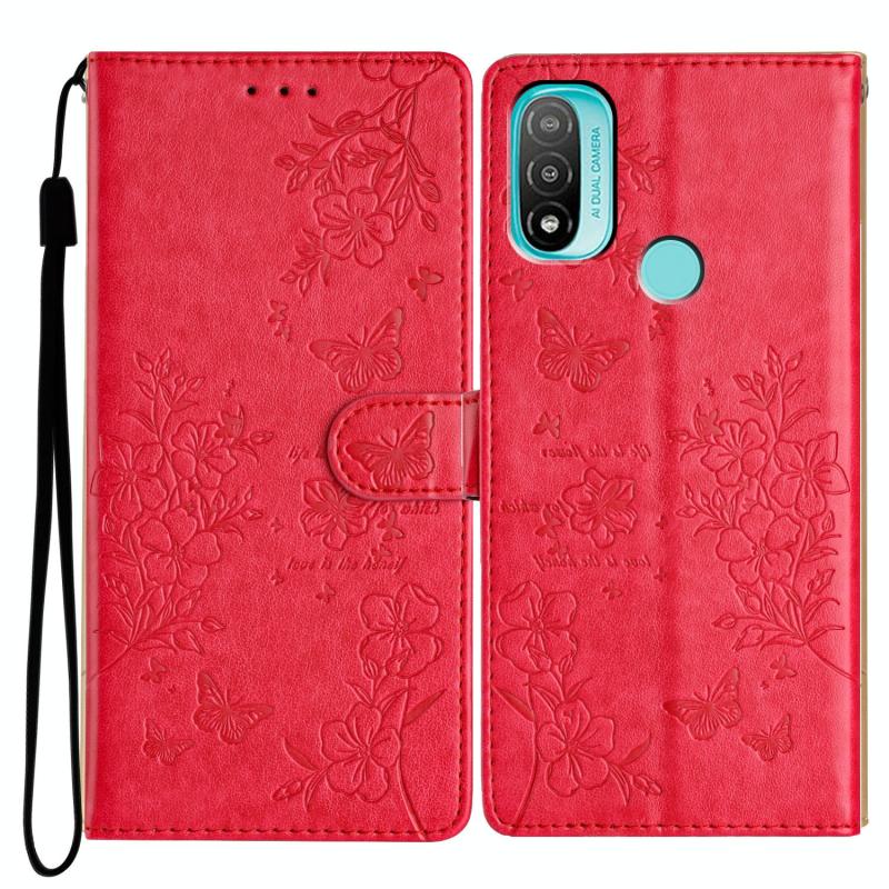 For Motorola Moto E20 / E30 Butterflies and Flowers Leather Phone Case(Red)