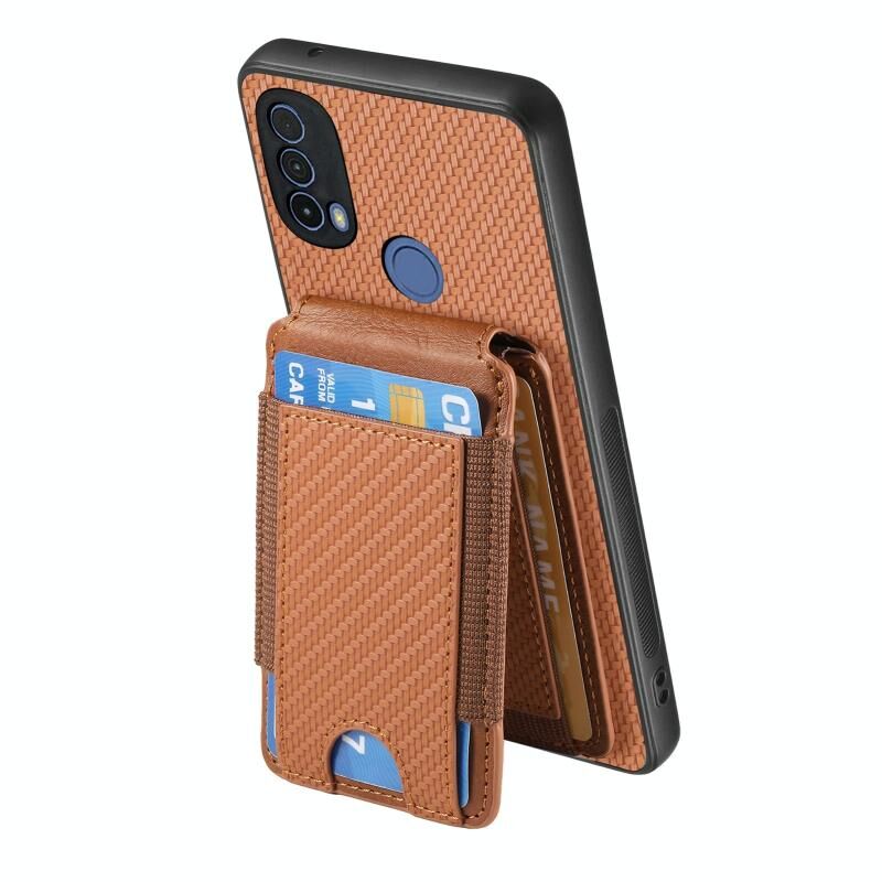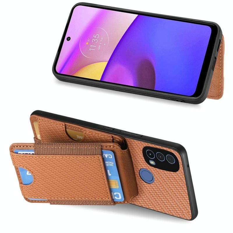 Για Motorola Moto E20 / E30 Carbon Fiber Κάθετη Flip Wallet Stand υπόθεση τηλεφώνου (Καφέ)