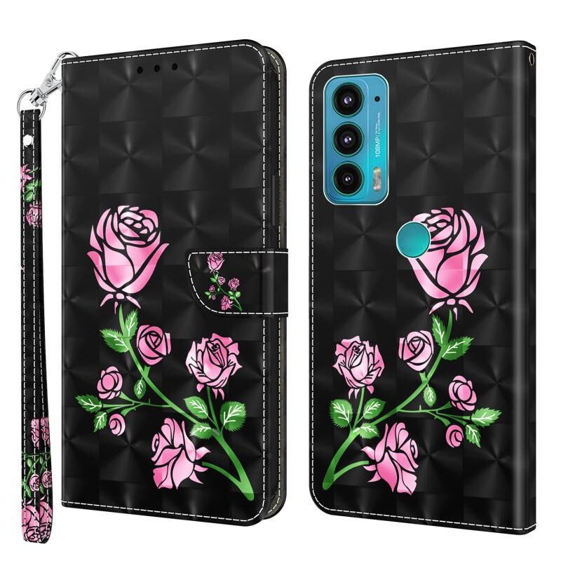 Θήκη τηλεφώνου από δέρμα με τρισδιάστατη βαφή για Motorola Moto E20 / E30 / E40 (Ρόδινο)
