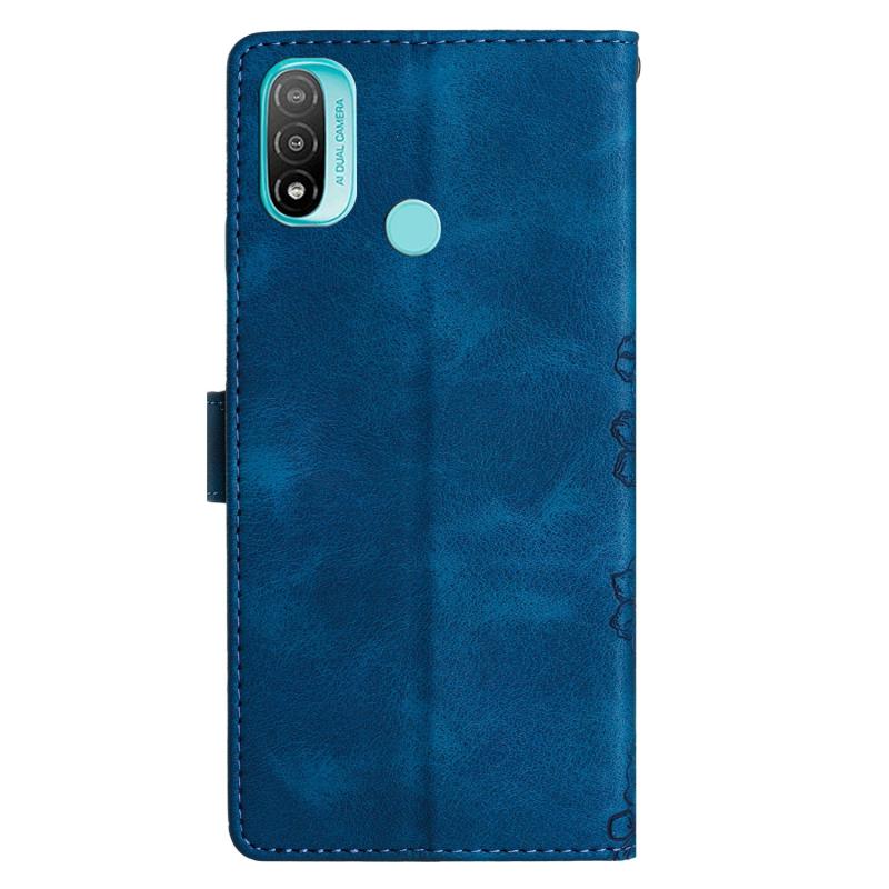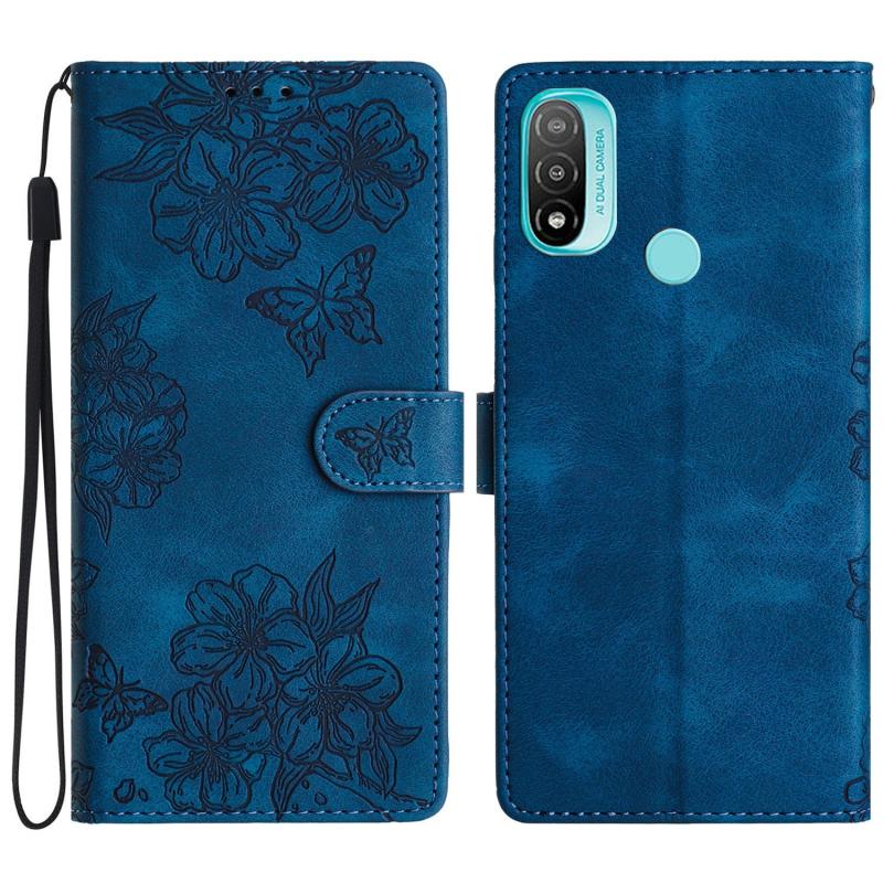 For Motorola Moto E20 / E30 / E40 Cherry Blossom Butterfly Skin Feel Embossed PU Phone Case(Blue)