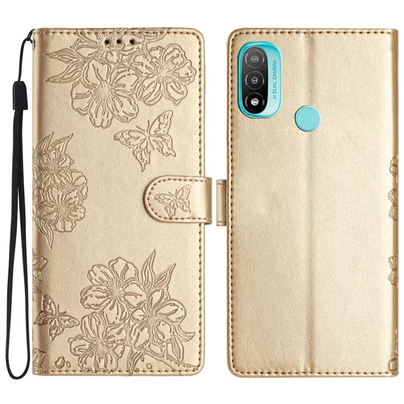 For Motorola Moto E20 / E30 / E40 Cherry Blossom Butterfly Skin Feel Embossed PU Phone Case(Gold)