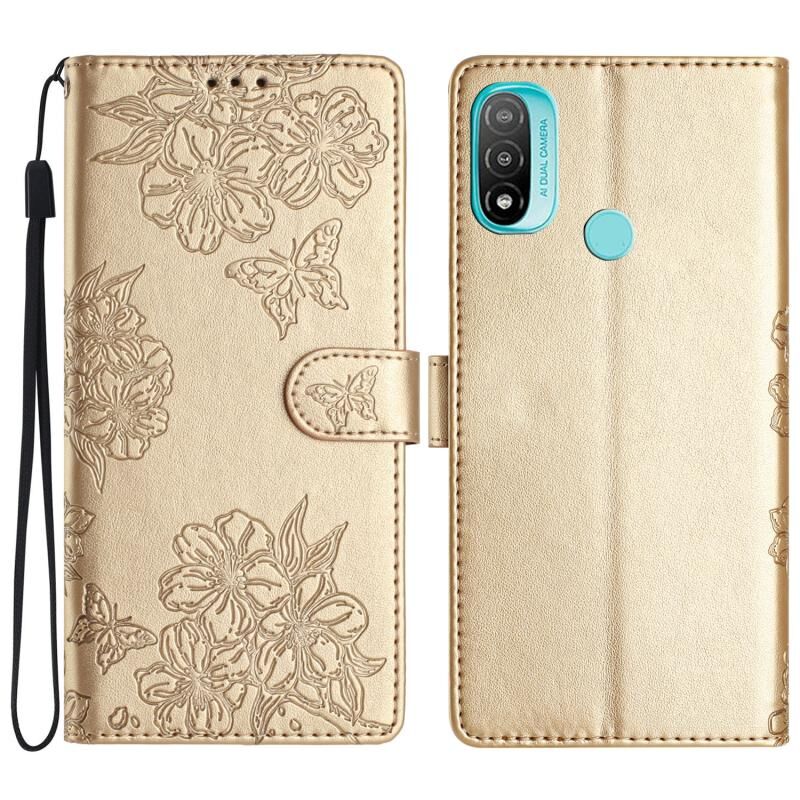 Θήκη τηλεφώνου Motorola Moto E20 / E30 / E40 με ανάγλυφο PU υλικό με αίσθηση δέρματος, σχέδιο Cherry Blossom Butterfly (Κόκκινο)