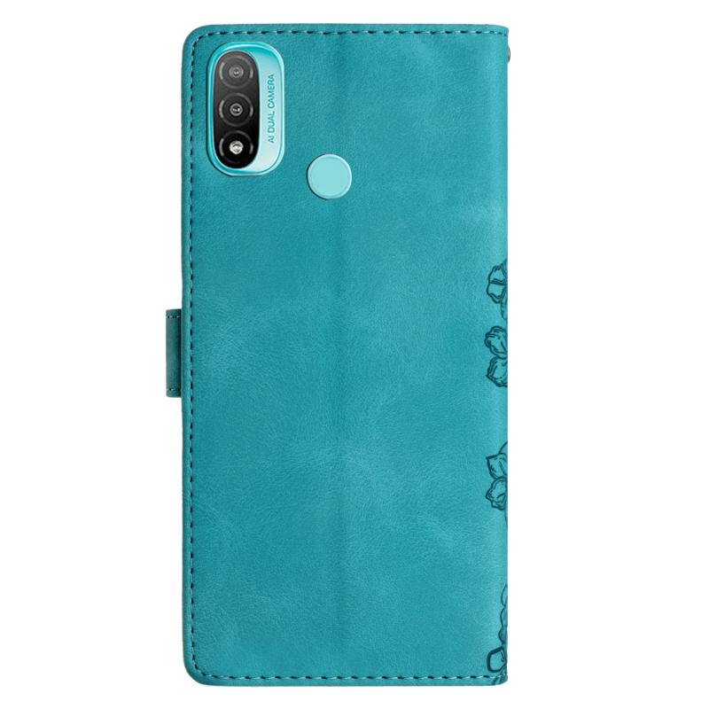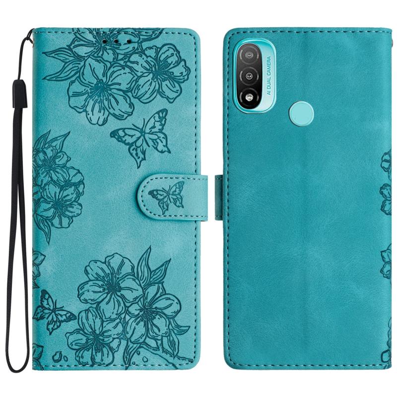 For Motorola Moto E20 / E30 / E40 Cherry Blossom Butterfly Skin Feel Embossed PU Phone Case(Green)