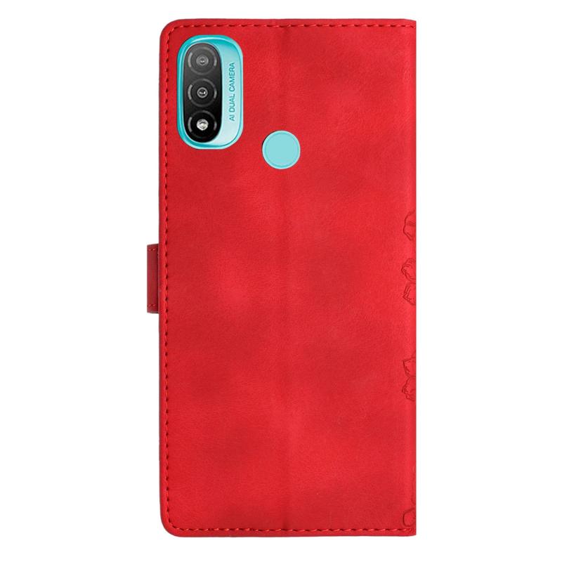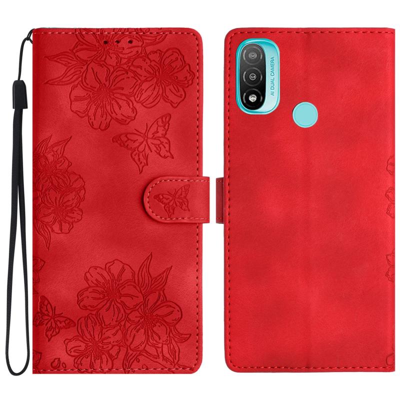 For Motorola Moto E20 / E30 / E40 Cherry Blossom Butterfly Skin Feel Embossed PU Phone Case(Red)