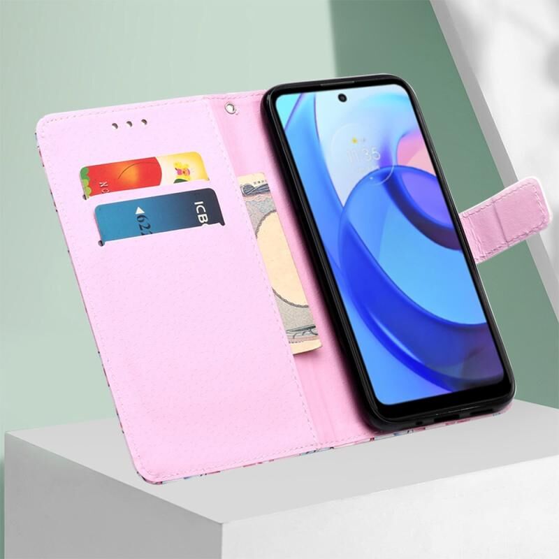 Θήκη κινητού τηλεφώνου από δέρμα με απλή ύφανση και έγχρωμο σχέδιο για Motorola Moto E20 / E30 / E40 (Μωρό Πάντα)