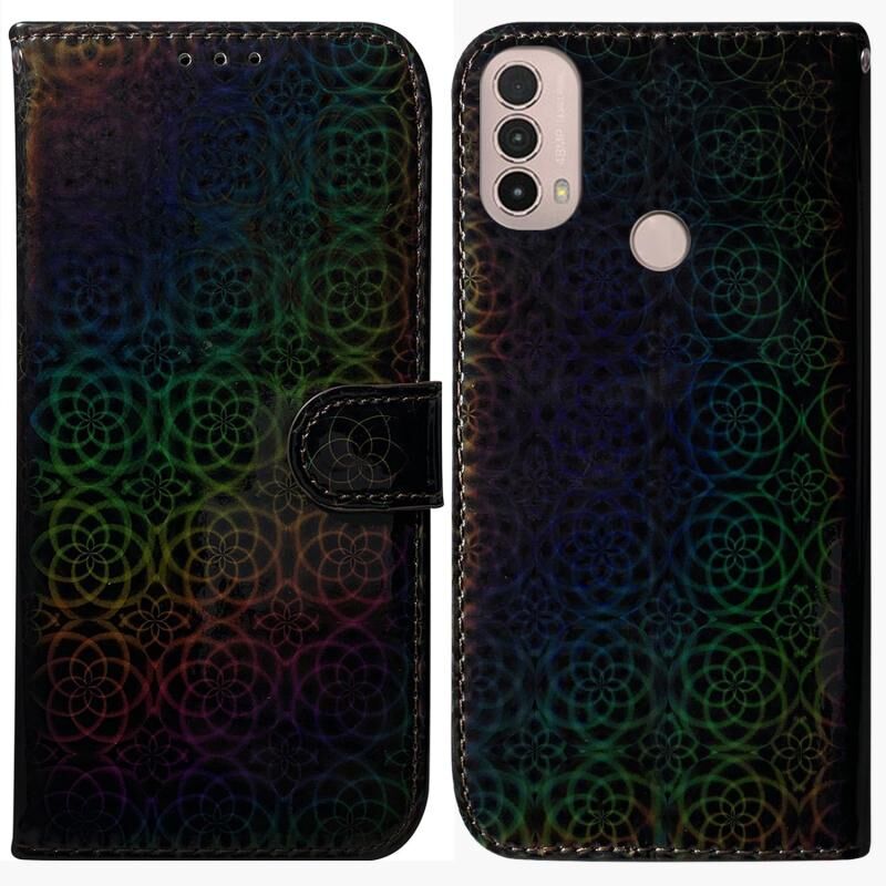 Για Motorola Moto E20 / E30 / E40 Πολύχρωμο μαγνητικό πόρπη δερμάτινη θήκη τηλεφώνου (μαύρο)