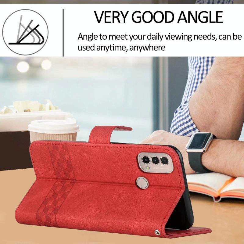 For Motorola Moto E20 / E30 / E40 Cubic Skin Feel Flip Leather Phone Case(Red)