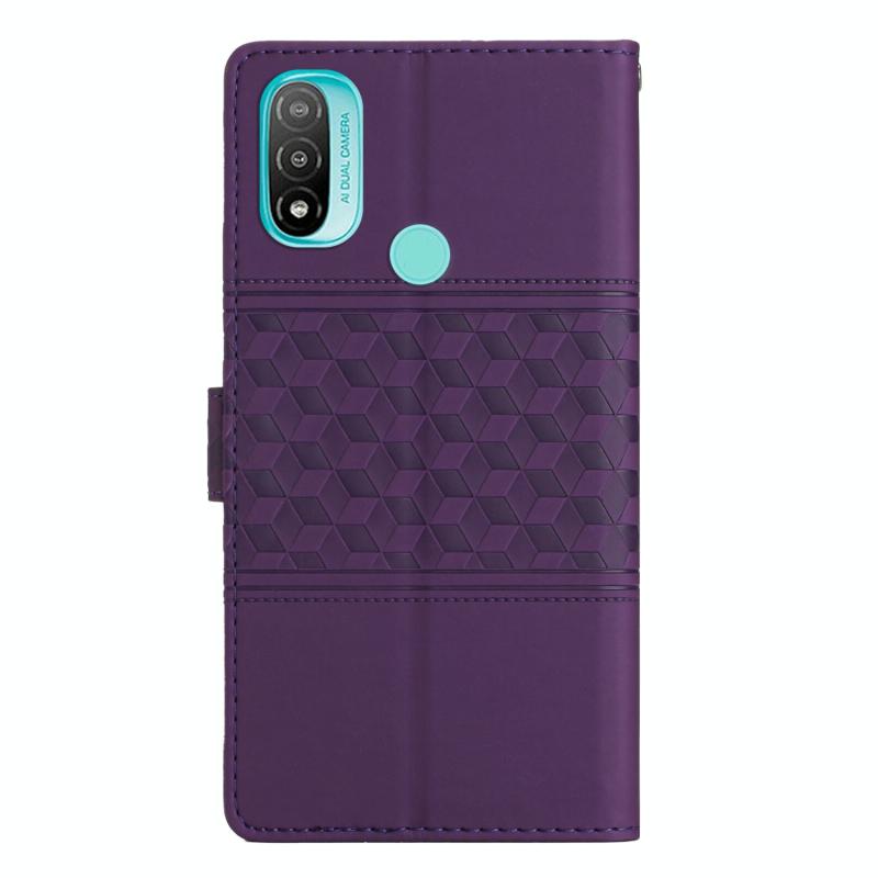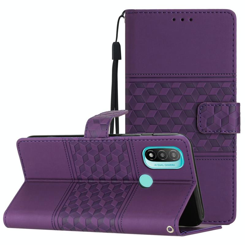 Θήκη κινητού τηλεφώνου δερμάτινη με ανάγλυφο σχέδιο διαμαντιού για Motorola Moto E20 / E30 / E40 με κορδόνι (Μωβ)