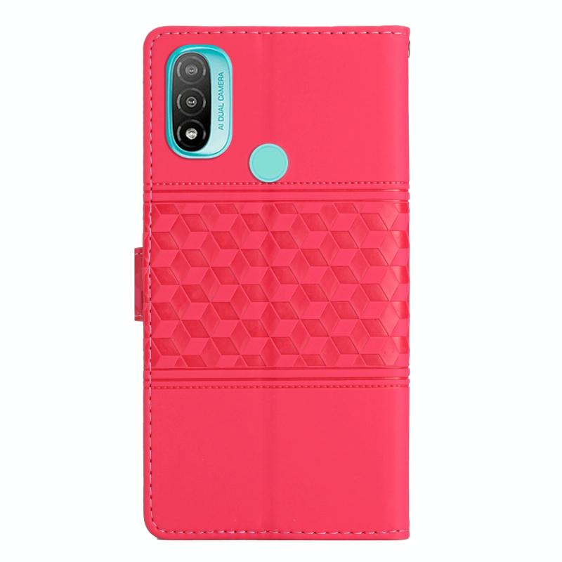 Θήκη κινητού τηλεφώνου δερμάτινη με ανάγλυφο σχέδιο διαμαντιού για Motorola Moto E20 / E30 / E40 με κορδόνι (Κόκκινο)