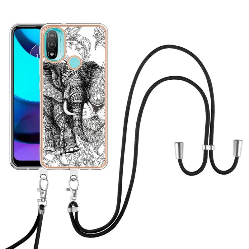 Θήκη τηλεφώνου με κορδόνι (Totem Elephant) για Motorola Moto E20 / E30 / E40 με ηλεκτρολυτική επιμετάλλωση και διπλής όψης IMD.