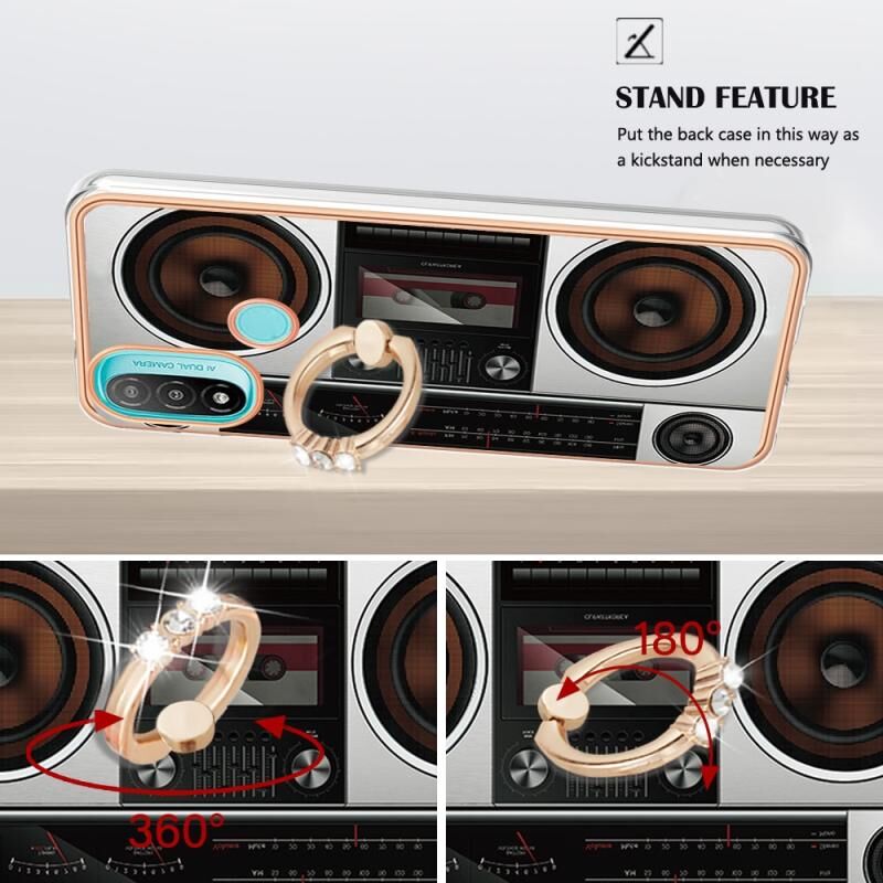 Θήκη τηλεφώνου με δακτύλιο στήριξης (Retro Radio) για Motorola Moto E20 / E30 / E40 με ηλεκτρολυτική επιμετάλλωση και διπλής όψης IMD.