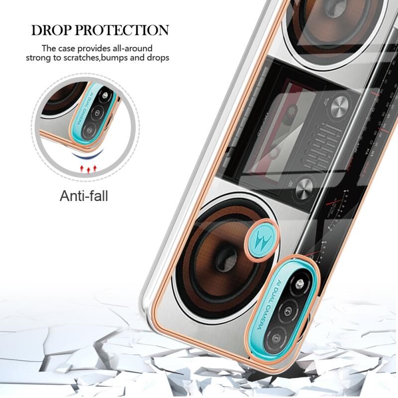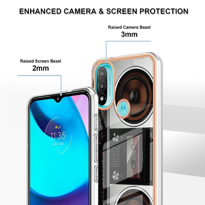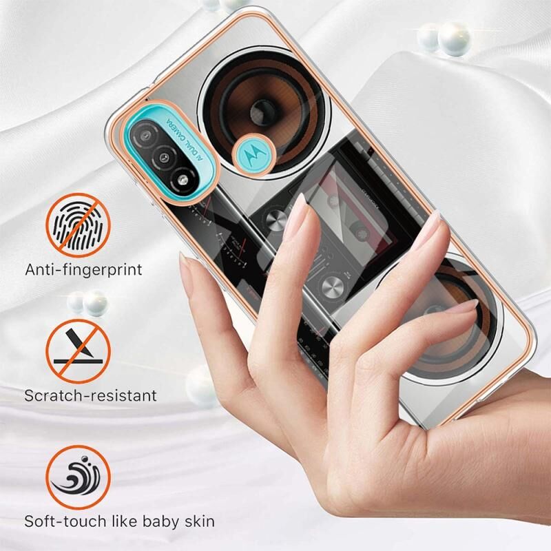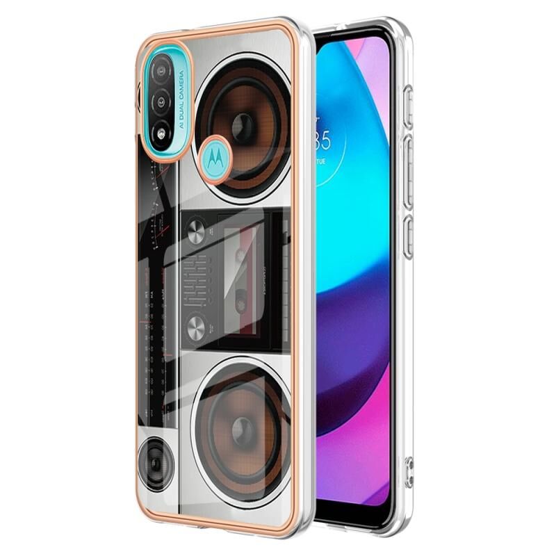 Θήκη τηλεφώνου για Motorola Moto E20 / E30 / E40 με επιμετάλλωση, μαρμάρινη, διπλής όψης IMD (Ρετρό Ραδιόφωνο)