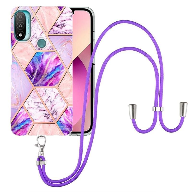 Θήκη κινητού τηλεφώνου TPU με γαλβανισμό και μαρμάρινο σχέδιο για Motorola Moto E20 / E30 / E40 με κορδόνι (Σκούρο Μωβ)