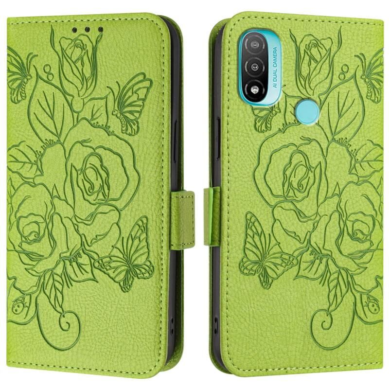 Για Motorola Moto E20 / E30 / E40 ανάγλυφο Rose RFID Anti-theft Δερμάτινη θήκη τηλεφώνου (πράσινο)