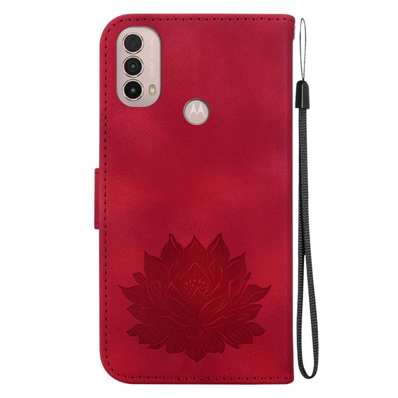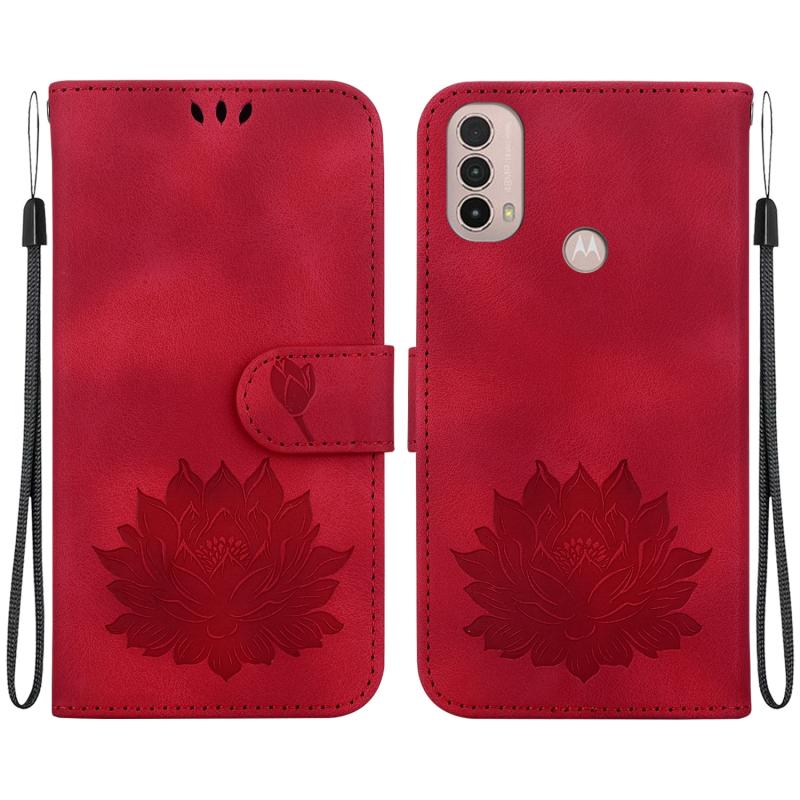 For Motorola Moto E20 / E30 / E40 Lotus Embossed Leather Phone Case(Red)