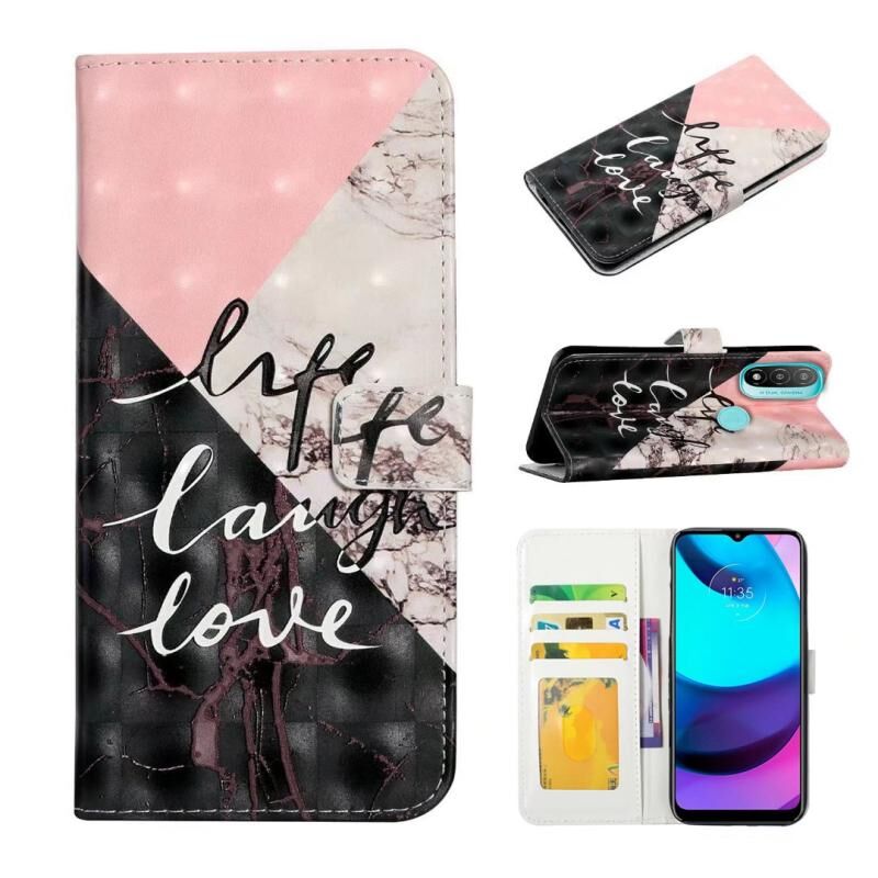 Θήκη τηλεφώνου δερμάτινη με ανάγλυφο σχέδιο λαδιού 3D για Motorola Moto E20 / E30 / E40 (Ραφή Μαρμάρου)
