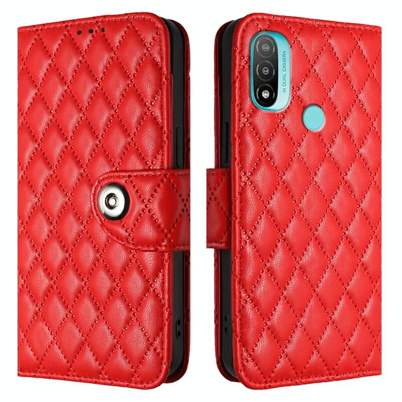 Για Motorola Moto E20 / E30 / E40 Rhombic Texture Flip δερμάτινη θήκη τηλεφώνου με κορδόνι (κόκκινο)