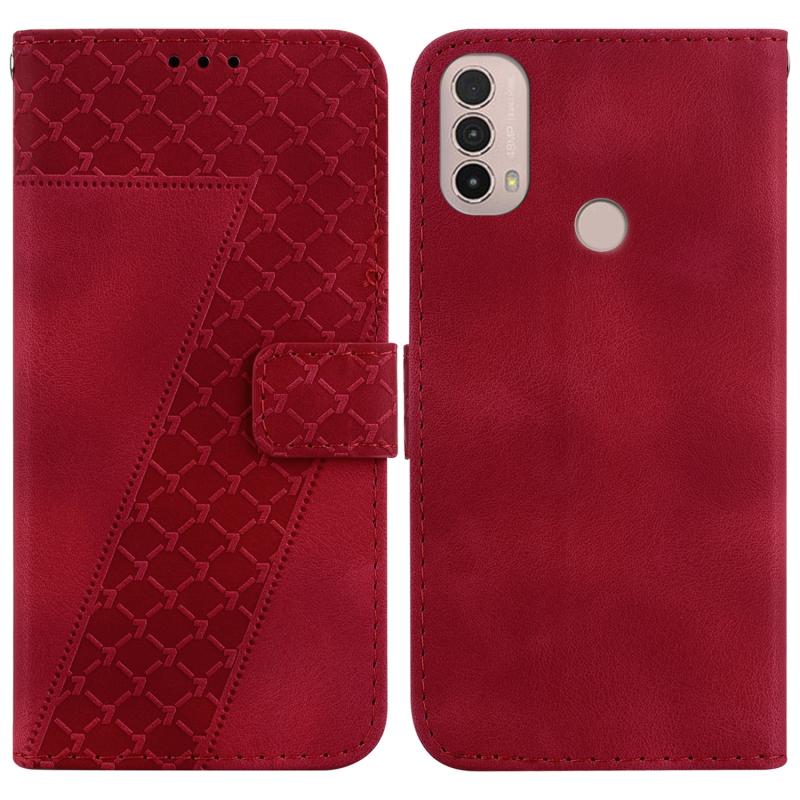 For Motorola Moto E20/E30/E40 Seven-shaped Embossed Leather Phone Case(Red)